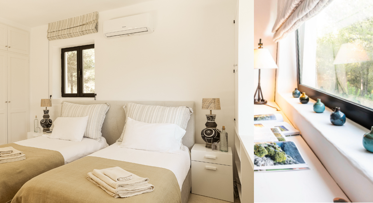 This large bedroom will be setup with two twin beds. Located alongside the pool, it also has a wide view onto the forest. Two person occupancy.